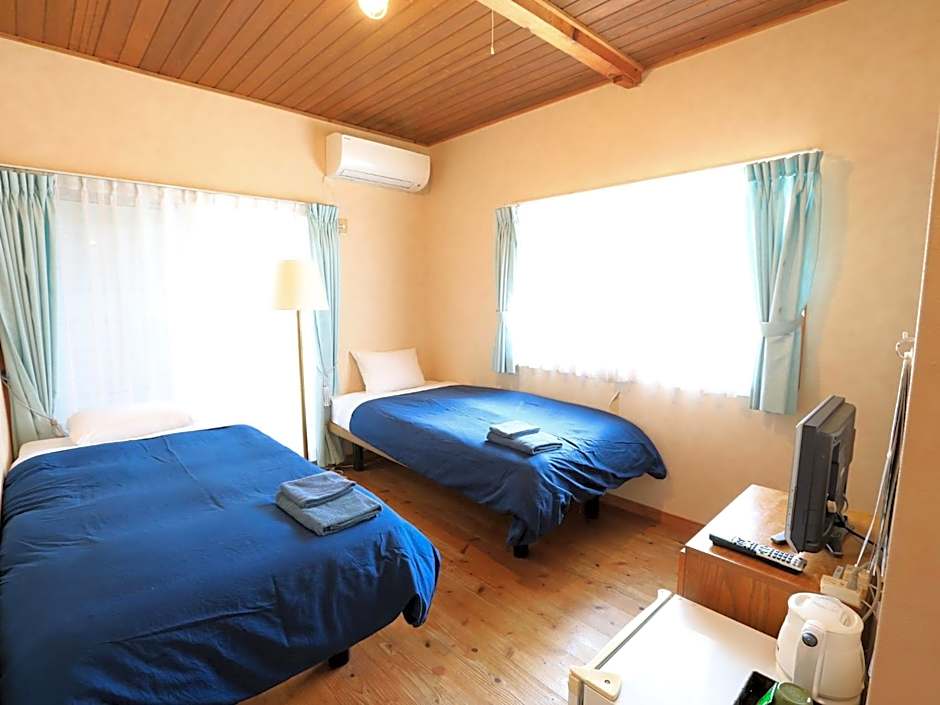 The twin room provides air conditioning and tatami, as well as a shared bathroom featuring a hairdryer. The unit offers 2 futons.